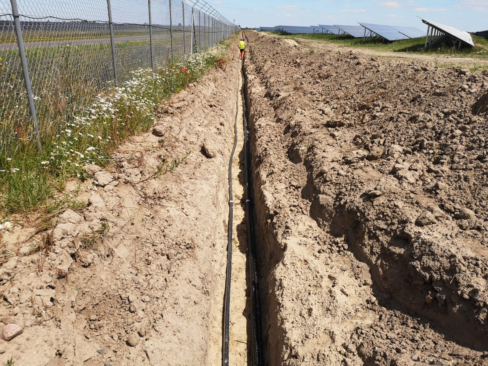 Wyróżnia nas doświadczenie w pracach przy farmach wiatrowych i fotowoltaicznych, w tym budowie linii kablowych SN.